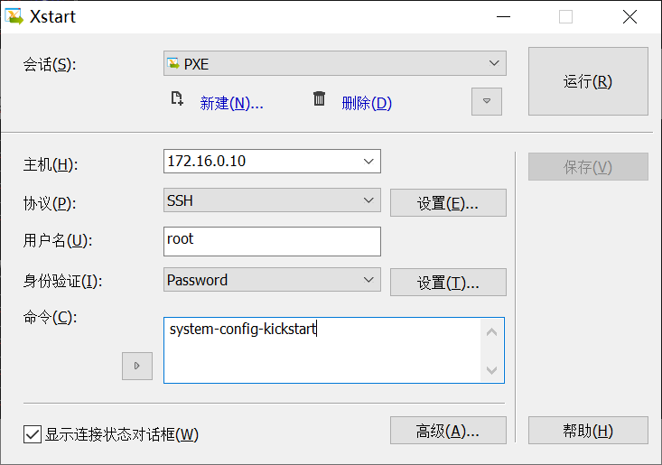 打开xmanager的xstart,如果报错,请安装:[root@PXE ~]# yum install xorg-x11-xauth
